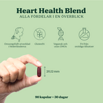 Till skillnad från mediciner har Heart Health Blend inga kända biverkningar. Vissa kan uppleva milda magbesvär i början på grund av vitlöken, men detta försvinner oftast snabbt. Ett tips är att ta tillskottet i samband med måltid.